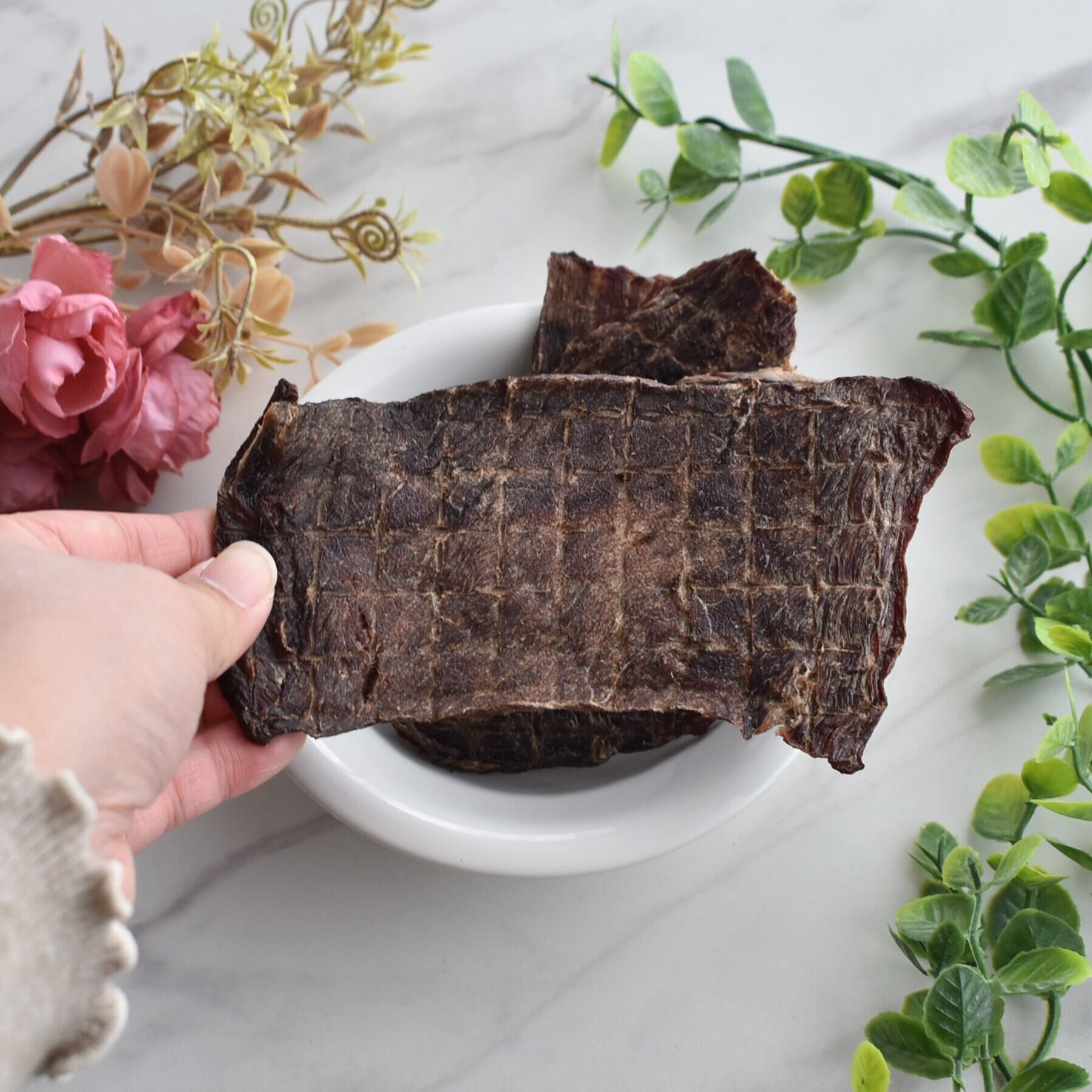 私たち人間が口にするものと全く同じ基準で作られた、愛犬のための牛肉ジャーキーです。厳選された国産牛肉を使用し、素材本来の旨味を凝縮しました。噛むほどに溢れる肉汁と、豊かな風味が愛犬を魅了します。